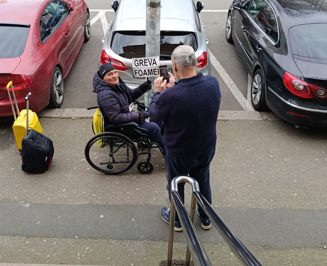 Un bărbat în scaun cu rotile s-a prezentat la Judecătoria Constanța ținând o pancartă pe care scria „Greva foamei“. Aceasta a fost o formă de protest față de situația dosarului său, despre care afirmă că a fost clasat fără să fie informat anterior.