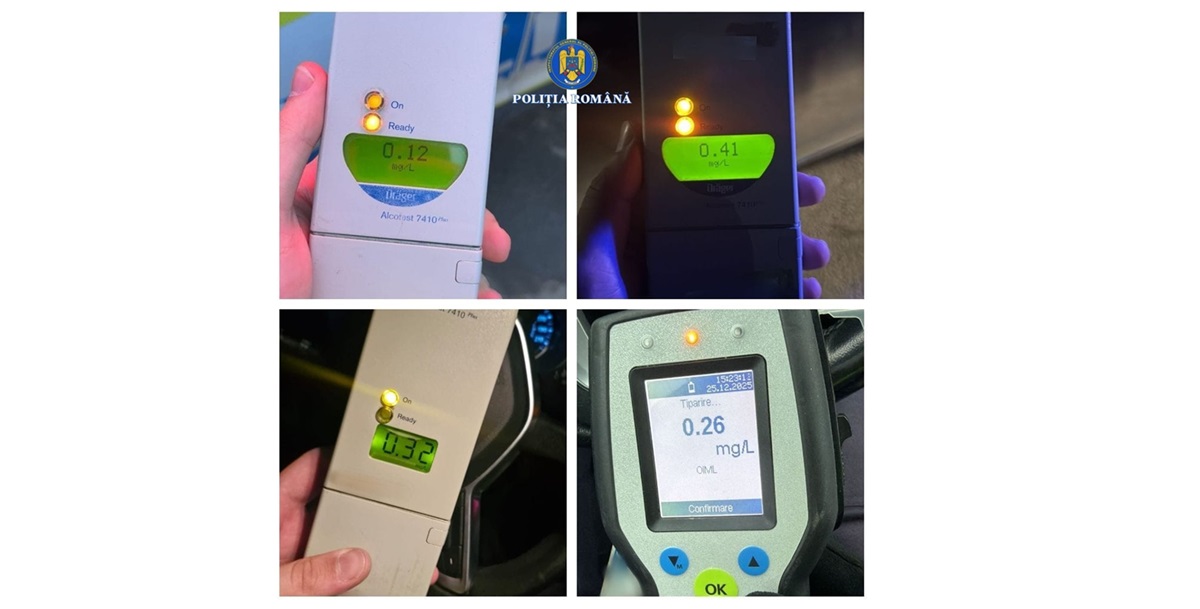 Pe 25 decembrie 2025, în jurul orei 22.25, polițiștii Secției 3 Poliție Rurală Mihail Kogălniceanu au prins un tânăr de 25 de ani care conducea un autoturism pe strada Macului din localitatea Dorobanțu, fiind sub influența alcoolului. Testul etilotest a indicat o concentrație de 0,67 mg/l alcool pur în aerul expirat. Persoana a fost dusă la spital pentru probe biologice, după ce a fost implicată într-un eveniment rutier soldat cu pagube materiale.