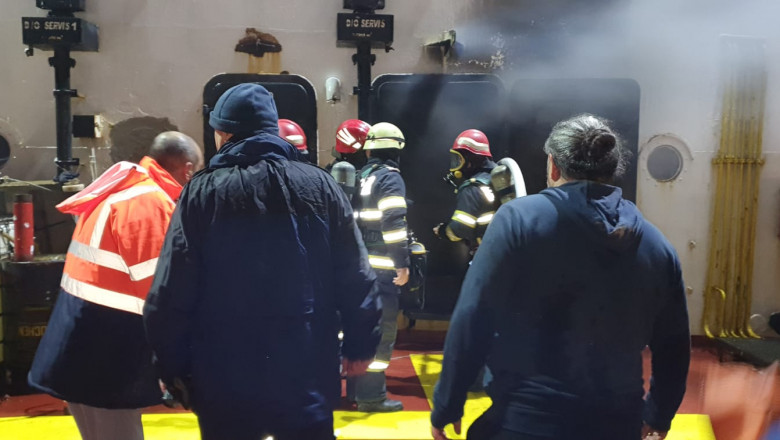 Incendiu la o navă cu cereale în Mila 35, Tulcea